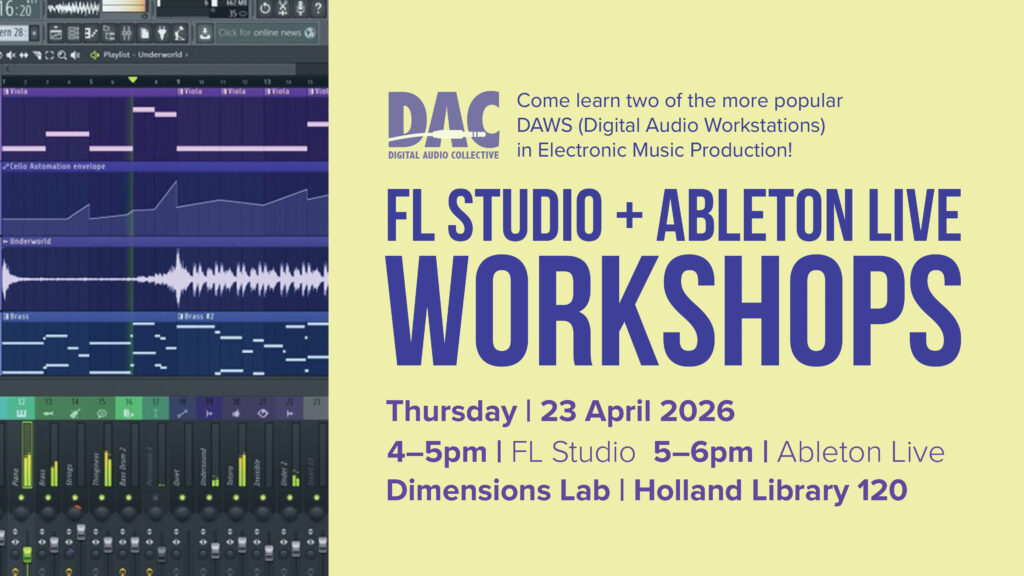 Come learn two of the more popular DAWs in Electronic Music Production, taught by members of the Digital Audio Collective!